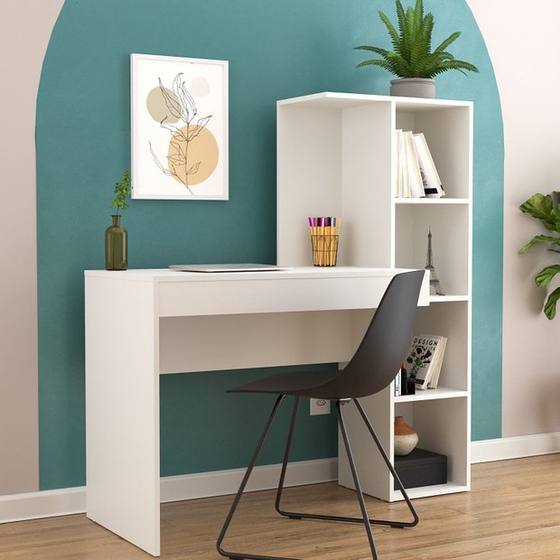 Escrivaninha com Estante Hecol Móveis 4 Nichos 122,2cm Branca Tx Branca TX