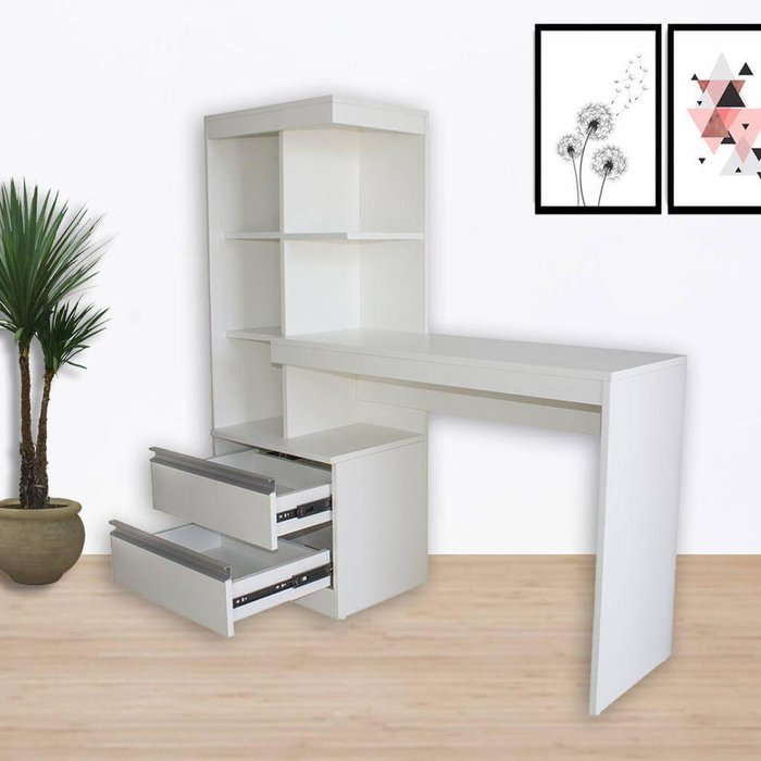 Escrivaninha Com Estante Para Escritório Branca 100% Mdf