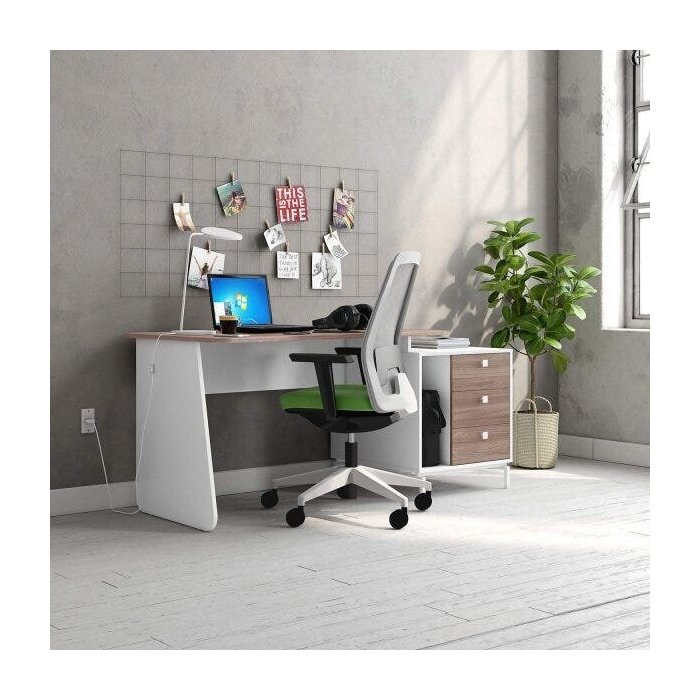 Escrivaninha com Gaveteiro 3 Gavetas e Nicho para CPU xadrez Bortolini Móveis Carvalho Munique/Branco