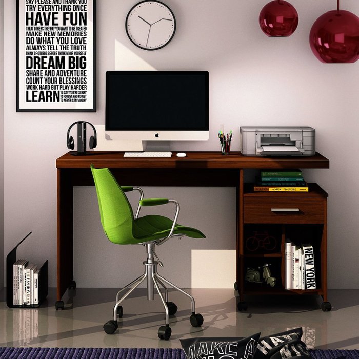 Escrivaninha com Rodízios 1 Gaveta 3 Nichos Slim Giga Móveis