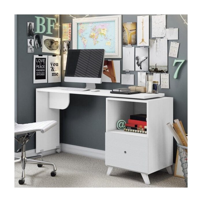 Escrivaninha com Tampo Giratório 1 Gaveta Carinho Albatroz Móveis Branco Textura