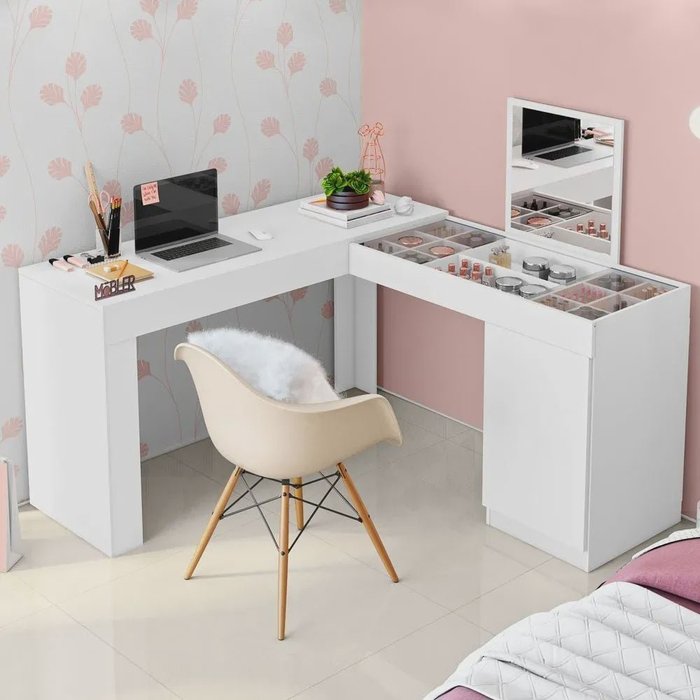 Escrivaninha de Canto com Penteadeira Princesa Branco - Mobler