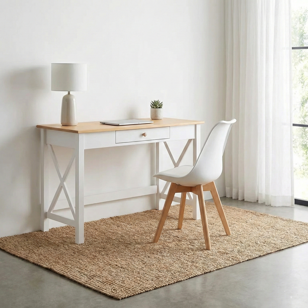 A Escrivaninha Vanilla MadeiraMadeira é ideal para você que busca um produto com design e qualidade. O tampo em madeira e a estrutura em design X na cor branca, trazem um toque rústico ao produto. Além disso, ela é feita 100% em Madeira Maciça, tornando o produto mais durável, com melhor custo benefício no longo prazo e é uma opção ecologicamente correta. Seu acabamento é em pintura UV, deixando as cores da madeira mais intensas e vivas.