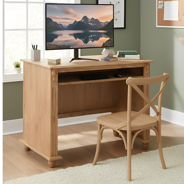 Escrivaninha de Madeira com Porta Teclado e Pés Torneados - Cera (madeira Bruta)