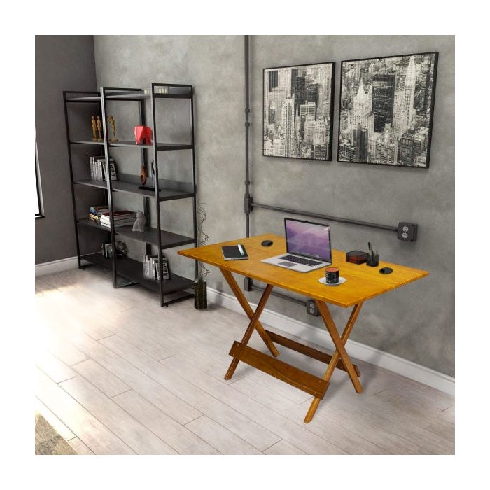 É ideal para home office, escritório e também para a sua casa. Feito em madeira maciça, tornando resistentes e duráveis. Seu design permite que seja encaixado em qualquer ambiente, trazendo um toque a mais para o seu ambiente de trabalho em sua casa. Além de sua durabilidade, o que lhe trará conforto. Por ser dobrável torna-se mais fácil guardar, manusear e limpar o produto.