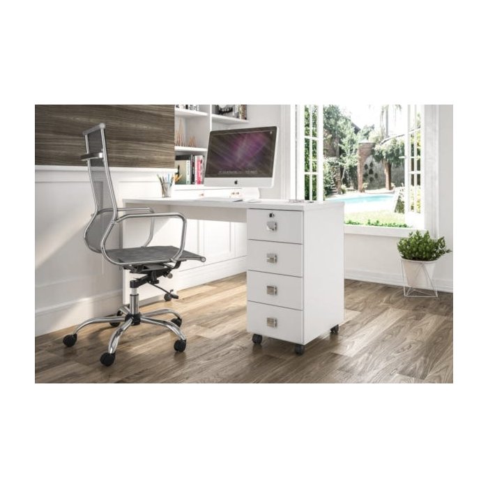 Feito 100% em MDP 15mm. Conta com chave na porta, puxadores cromados e rodízios.