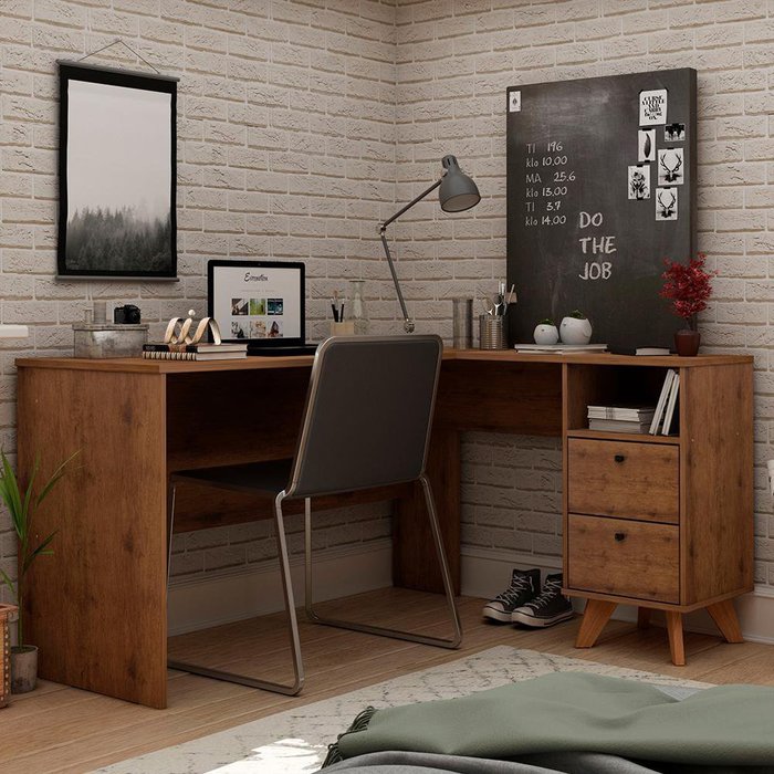 Escrivaninha em L Retrô 2 Gavetas Havana Gelius Móveis Madeirado