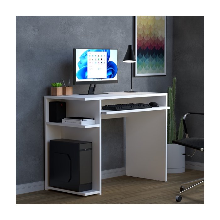 Escrivaninha Gamer com Suporte para Teclado Extensível e Prateleiras – Jm3 Móveis:branco