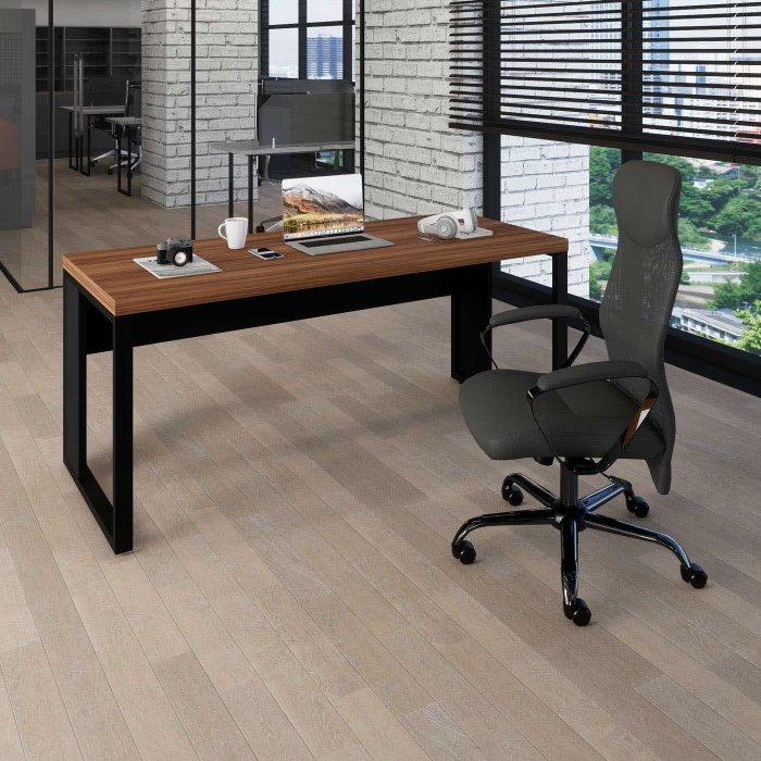 Escrivaninha Industrial 170cm X 60cm Pés Metal F5 Office Nogal/Preto
