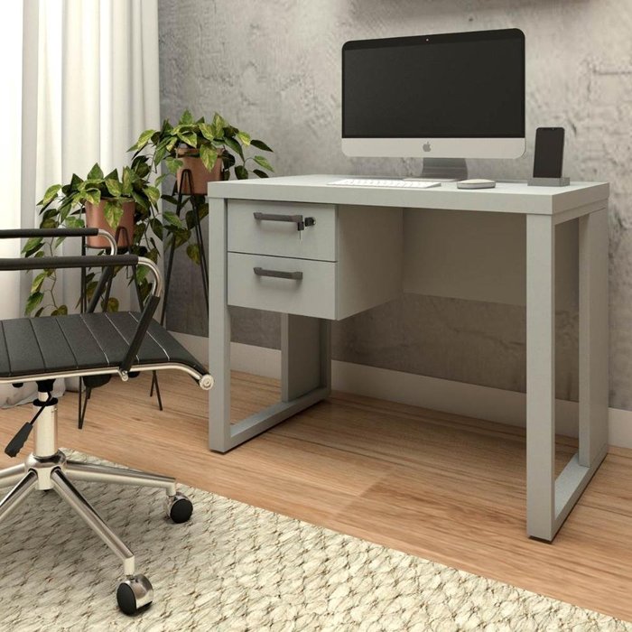 Escrivaninha Industrial com 2 Gavetas e Pés em Metal 90cm Cor:cinza Claro