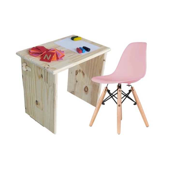 Escrivaninha Infantil Menina Madeira Com Cadeira