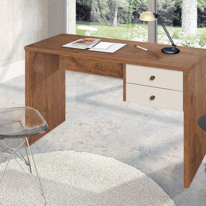 Escrivaninha Intelectual deixará seu ambiente de estudos ou trabalho mais charmoso. Seu design permite harmonia com outros móveis do ambiente independentemente do tipo de decoração. Com tampo e latarais produzidos em MDP de 25mm que proporcionam maior resistência e estabilidade, também tem duas gavetas com corrediças metálicas e bom espaço para cadeira. Produzido com madeira de reflorestamento e com certificado FSC