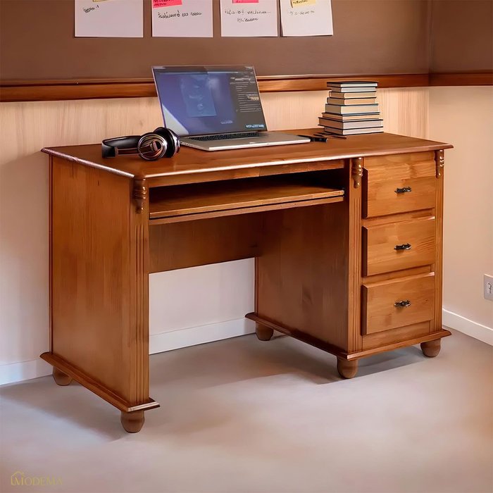 Escrivaninha Madeira Maciça 3 Gavetas Suporte para Teclado e Divisor de Ambiente 50605 Linz Moveis