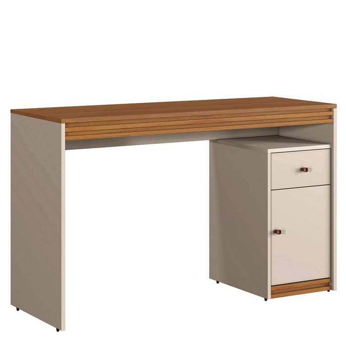 Este móvel geralmente possui uma superfície plana, com uma ou mais gavetas para armazenar materiais de escritório, livros e outros itens essenciais.