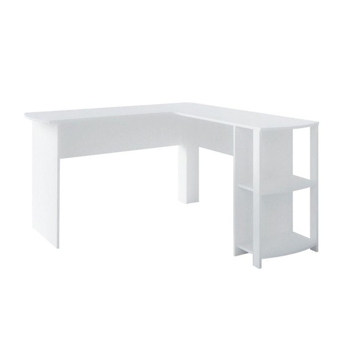 Escrivaninha Mesa em L para Home Office e Escritório 2 Prateleiras Luma Artany Branco Branco