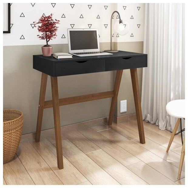Escrivaninha Mesa Escritório 100% Iza 2 Gavetas 90cm Espresso Móveis Preto E Amêndoa Preto/Amêndoa