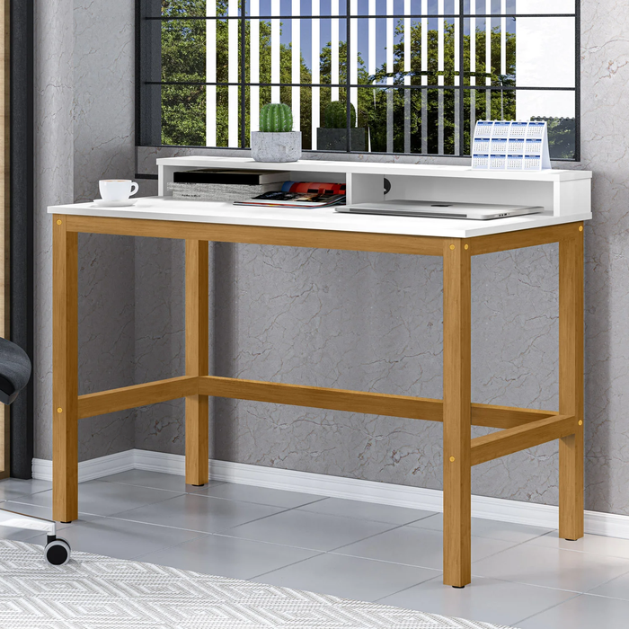 Escrivaninha Mesa Escritório 110cm Pés em Madeira Maciça California Branco/Amêndoa