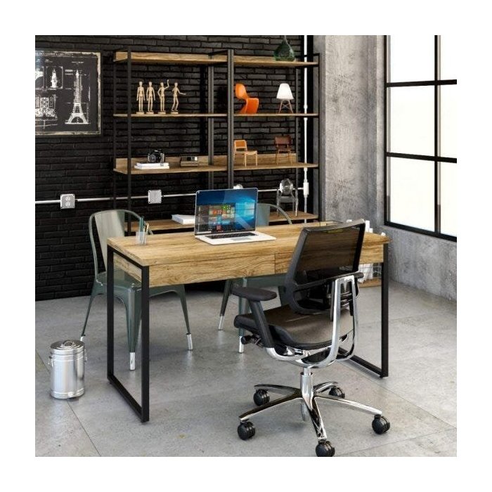 Escrivaninha Mesa Escritório 135cm 2 Gavetas Kuadra Carvalho