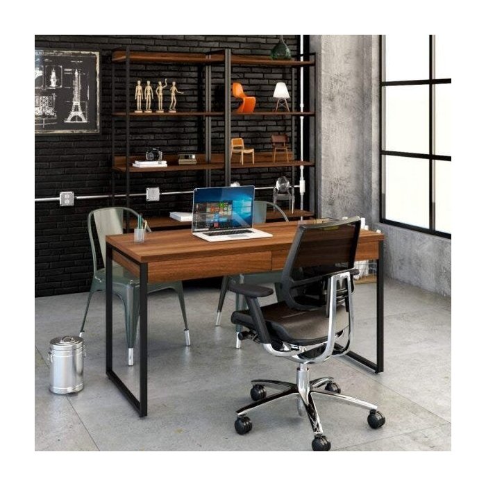Escrivaninha Mesa Escritório 135cm 2 Gavetas Kuadra Nogal