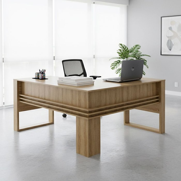Escrivaninha Mesa Escritório 136cm em L com Detalhe Ripado ME4145 Amendoa