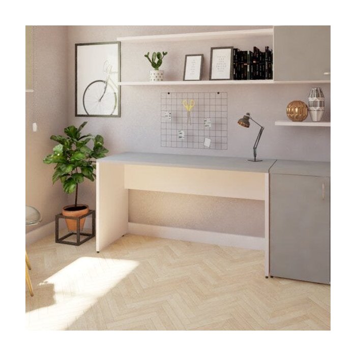 Escrivaninha Mesa Escritório 140cmx47cm 25mm Branco/Cinza Cristal