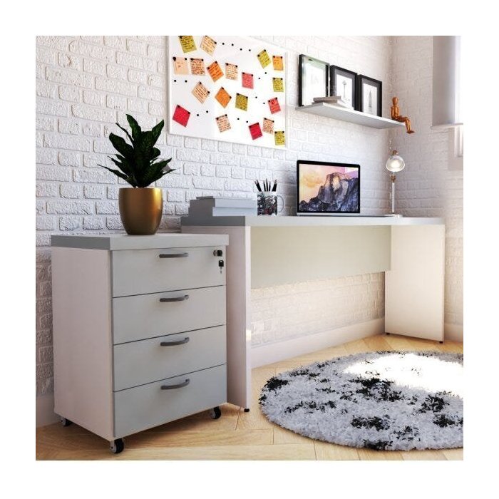 Escrivaninha Mesa Escritório 180cmx42cm 40mm Branco/Cinza Cristal