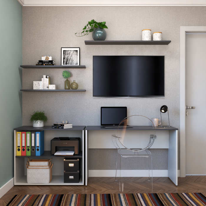 | Informações Complementares (Novo) | Acompanha 1 estante baixa lateral (Largura: 90cm, Profundidade: 47cm e Altura: 75cm) e 3 prateleiras para fixar na parede. |