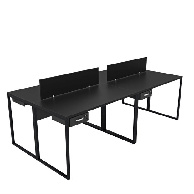 Ver imagem 1 de Escrivaninha Mesa Escritório 2 Gavetas 4 Lugares 240cm Industrial Preto