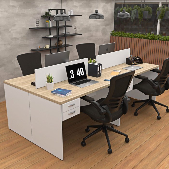 Escrivaninha Mesa Escritório 4 Lugares Carvalho/Branco