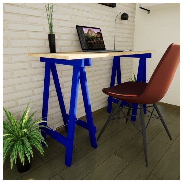 Se você procura praticidade, organização e decoração, esta Escrivaninha prática maciça vai resolver o seu problema, os cavaletes são reforçados em madeira maciça eucalipto na cor Azul del rey e o tampo em madeira maciça pinus finger na cor natural, pode montar e desmontar a qualquer momento, além da praticidade esta Escrivaninha prática também dá um toque clássico em sua decoração deixando o seu ambiente mais aconchegante.