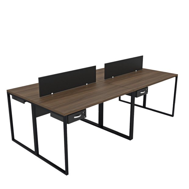 Invista no bem-estar da sua equipe com a estação de trabalho estilo industrial de 4 lugares com gavetas da Linha de Estações de Trabalho da Netmobil.