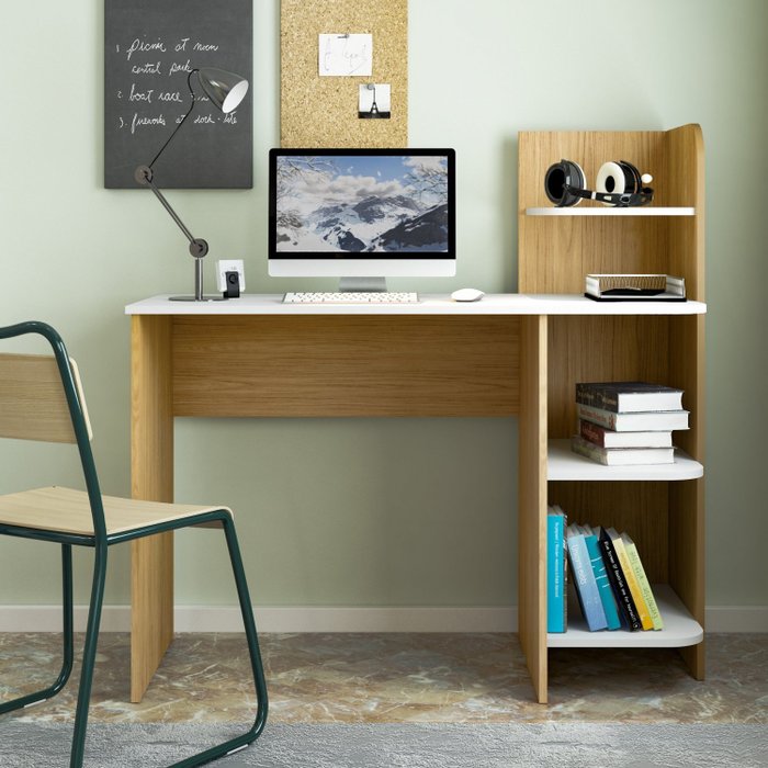 Escrivaninha Mesa Escritório com Estante 3 Prateleiras 111,5cm Link Carvalho/Branco