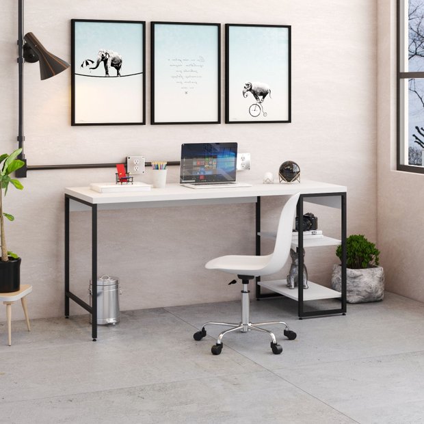 Escrivaninha Mesa Escritório com Estante Baixa Estilo Active 2 Prateleiras 150cm Industrial Yescasa Branca Chess Branco Chess