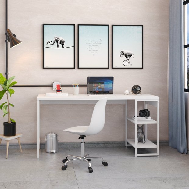 Escrivaninha Mesa Escritório com Estante Baixa Estilo Active 2 Prateleiras 150cm Industrial Yescasa Branco/Branco Chess