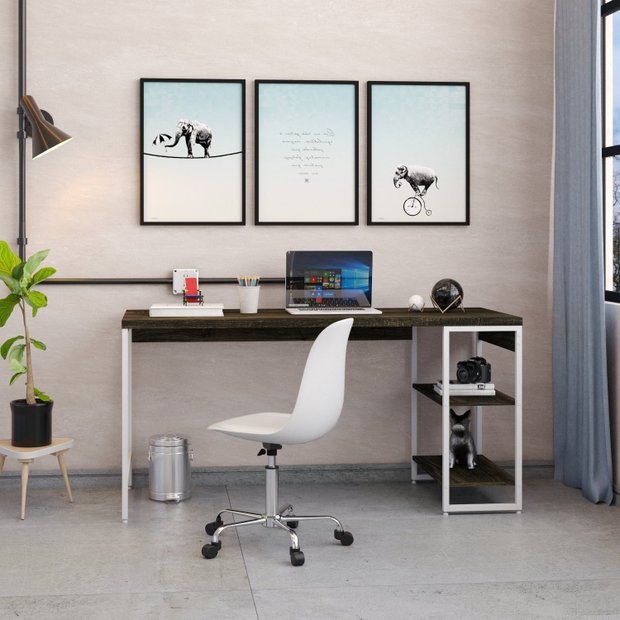 Escrivaninha Mesa Escritório com Estante Baixa Estilo Active 2 Prateleiras 150cm Industrial Yescasa Carvalho Dark/Branco Chess