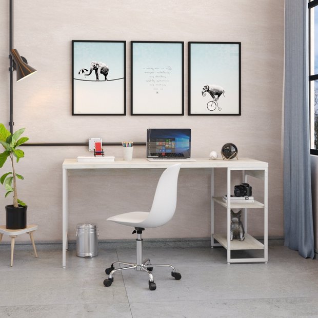 Escrivaninha Mesa Escritório com Estante Baixa Estilo Active 2 Prateleiras 150cm Industrial Yescasa Snow/Branco Chess