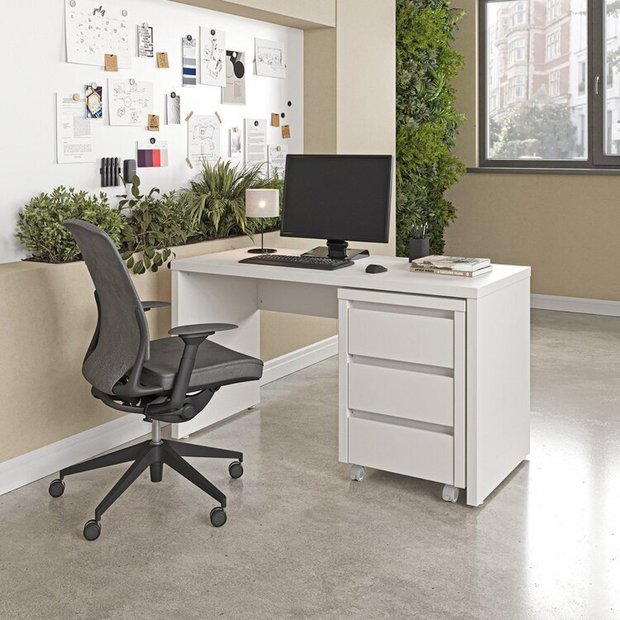 Escrivaninha Mesa Escritório com Gaveteiro com Rodízio Ficus 135cm CabeCasa MadeiraOriginals Branco Branco