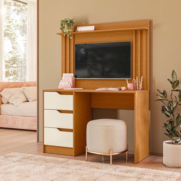 Escrivaninha Mesa Escritório com Painel Ripado para TV até 42 Polegadas Duo