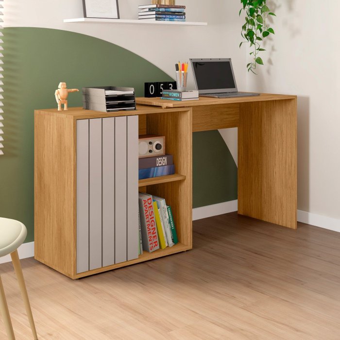 Escrivaninha Mesa Escritório com Ripada Start 1 Porta 140cm Buriti E Fendi