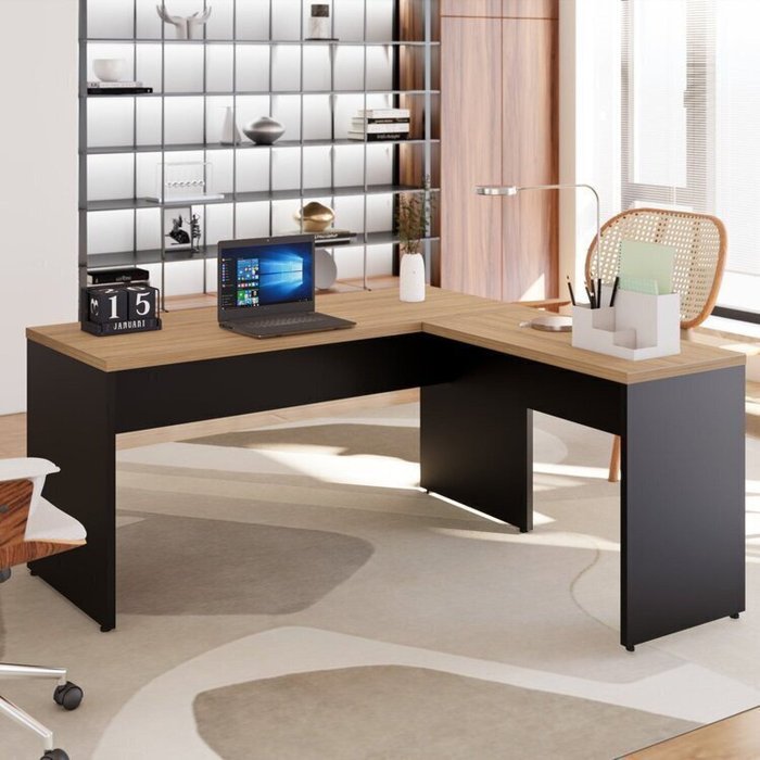 Escrivaninha Mesa Escritório Diretor em L 150x150cm Espresso Móveis Calvi/Preto
