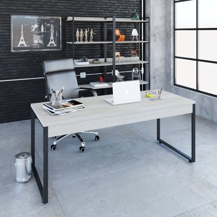 Escrivaninha Mesa Escritório Diretor Estilo Industrial 180cm Kuadra Snow