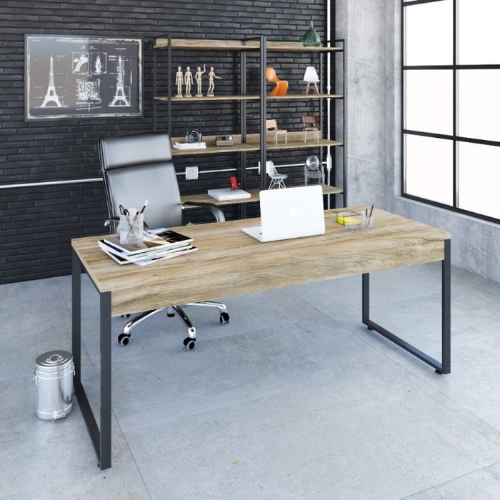 Escrivaninha Mesa Escritório Diretor Estilo Industrial 180cm Kuadra Carvalho