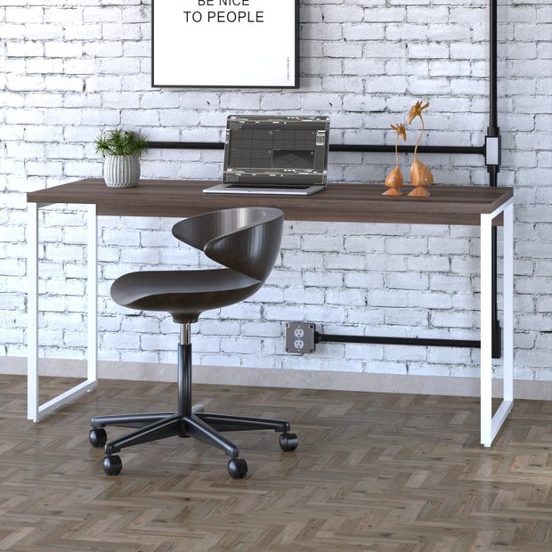 Escrivaninha Mesa Escritório Diretor Estilo Kuadra 150cm Industrial Nogal E Branco Nogal/Branco