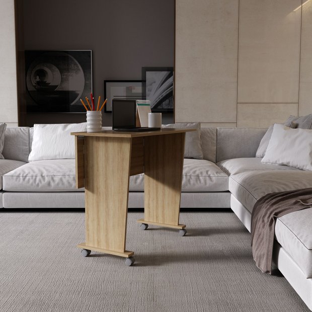 A Mesa dobrável é ideal para ambientes pequenos que necessitam de muita praticidade, pois cabe em lugares estreitos e ao ser montada, é uma ótima Mesa para notebook, estudos ou até mesmo refeições. Os rodízios não possuem trava, possibilitam deslize fácil e macio da peça, além de muita praticidade. É totalmente fabricada no brasil e além de seu bonito visual é feita com madeira de reflorestamento, sendo 100% ecologicamente correta, o que confere a boa resistência e durabilidade à peça não agredindo o meio ambiente.