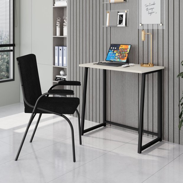 Escrivaninha Mesa Escritório Dobrável Fit Mds, 77*45*80 80cm Industrial Preto E Off White Preto/Off White