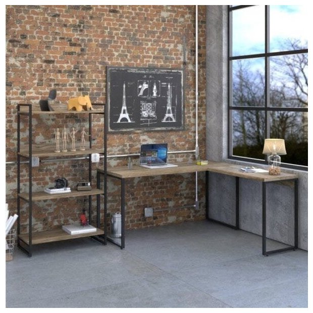 A linha Kuadra tem seu design com inspiração no estilo industrial e é comporto por escrivaninha em L e estante multiuso que remetem muito a decoração utilizada nos lofts das grandes metrópoles nos anos 60 e 70. Harmonizando o metal e os tons de madeira, foram projetados móveis versáteis e com estilo, que podem compor ambientes flexíveis e cheios de personalidade. Suas estruturas são fabricadas em aço, espessura dos pés de 30x20mm, com soldas suavizadas e pintura texturizada epóxi-pó, conta com pés niveladores de altura e parafusos na cor preta. Para os tampos são utilizados MDP-BP acetinado com fitas de borda em PVC, dando uma maior durabilidade ao seu móvel.