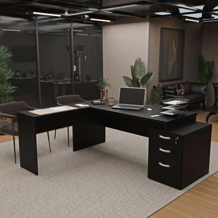 Escrivaninha Mesa Escritório em L Diretor 3 Gavetas Preto