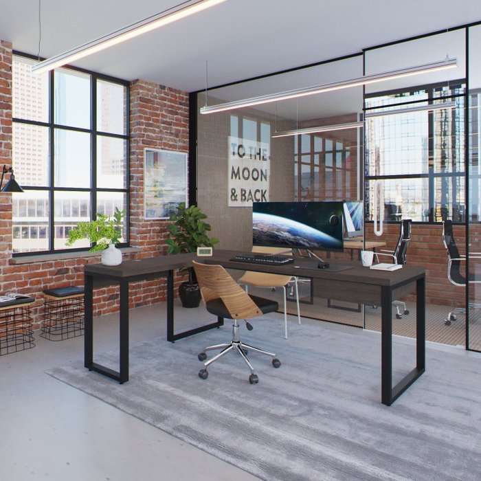 A mesa em L Yon YOML71901G possui dimensões generosas, combinando funcionalidade com o design industrial, ideal para criar uma estação de trabalho eficiente e estilosa. O tampo desta mesa é engrossurado em 40mm e as bordas possuem acabamento em fita de PVC de 01mm, proporcionando durabilidade e uma superfície muito resistente. Os pés são feitos em tubos de aço 30x50mm, conferindo estabilidade, robustez e uma imponente qualidade. A gaveta com corrediças telescópicas oferece praticidade e organização e sua combinação de materiais e proporções bem pensadas a tornam uma opção de escolha versátil e elegante para ambientes corporativos ou home offices.