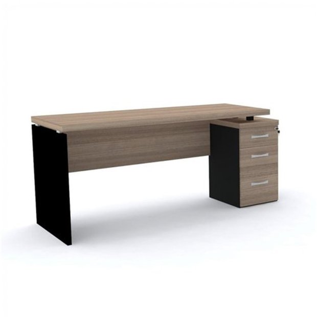 Mesa Gerencia com tampo encabeçado de 40mm de espessura com pé gaveteiro com 3 gavetas. A Mesa para Escritório consegue combinar facilmente com outras mobílias sem atrapalhar a decoração. Ela oferece espaço para você e deixa o seu local de trabalho muito mais organizado e elegante. É ideal para desempenhar tarefas diárias de trabalho, acomoda inúmeros objetos que você desejar, produzida em estrutura MDP que a deixa mais resistente e mais segura para você.