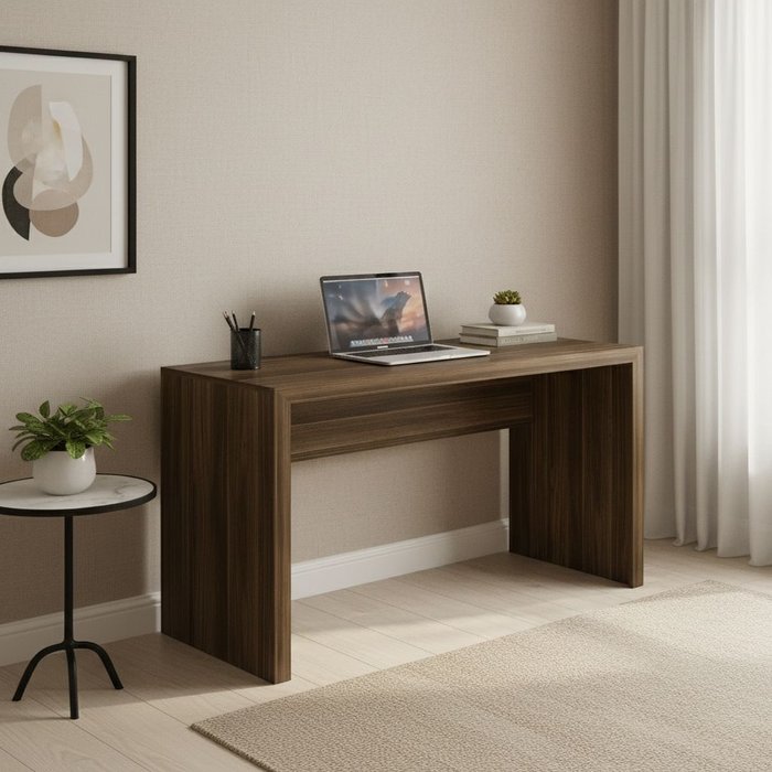 Este móvel geralmente possui uma superfície plana, com uma ou mais gavetas para armazenar materiais de escritório, livros e outros itens essenciais.